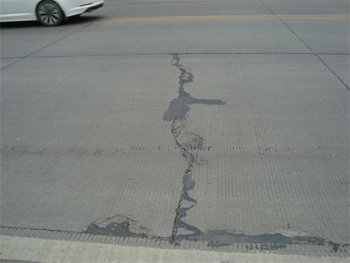 3、此種修補方法限于混凝土面板基礎較穩(wěn)固時使用。如果面板已出現(xiàn)比較嚴重的錯臺、脫空,建議先打孔壓漿后再行條帶修補。